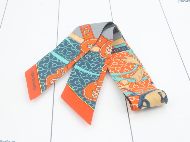ツイリー 朝の散歩 シルク オレンジ/エメラルドグリーン/ベージュ/ネイビー