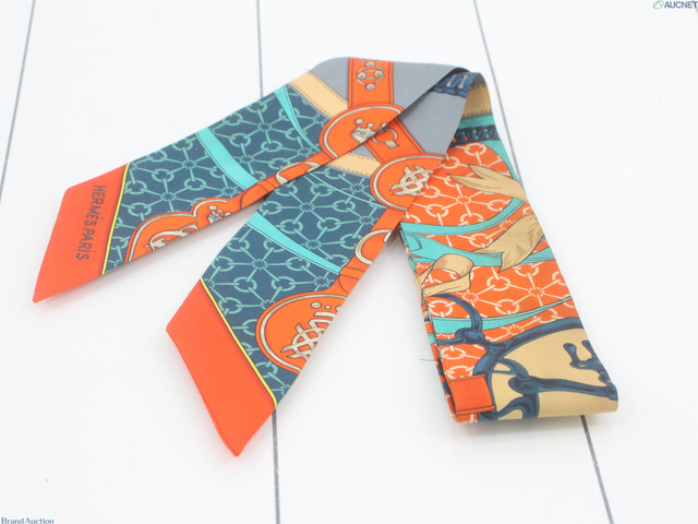 ツイリー 朝の散歩 シルク オレンジ/エメラルドグリーン/ベージュ/ネイビー