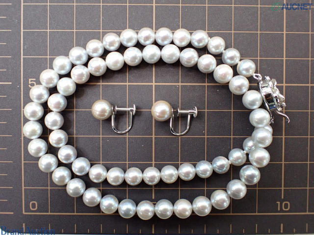 着色パールネックレス・イヤリングセット ネックレス/SV イヤリング/K14WG