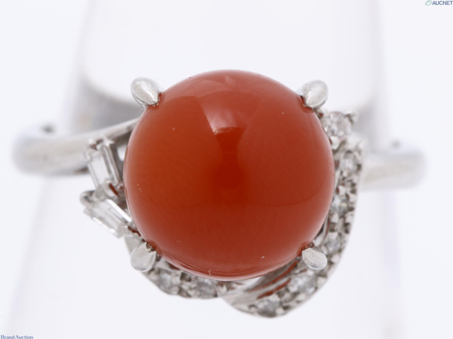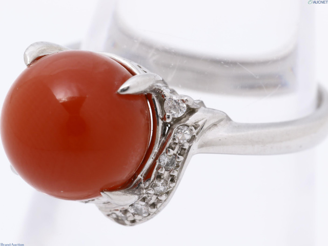 PT900 リング 珊瑚 D0.10ct 総重量5.0g #10