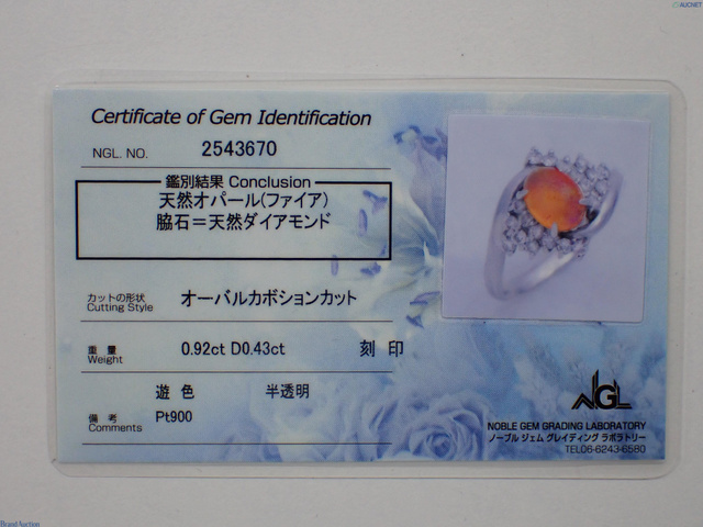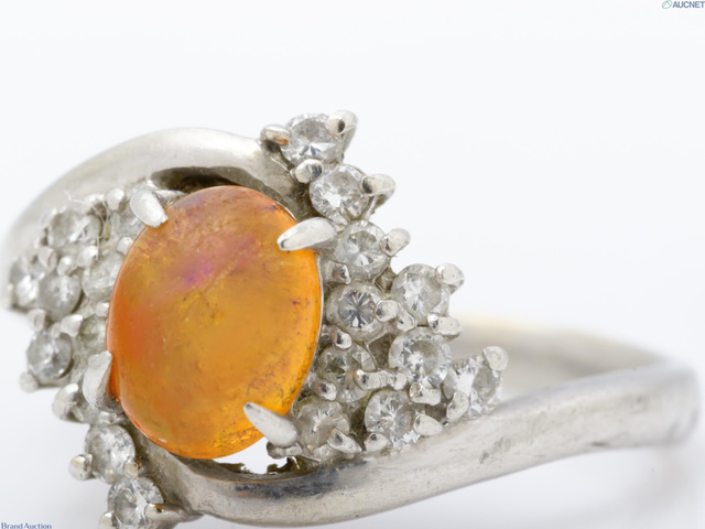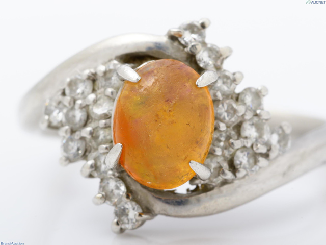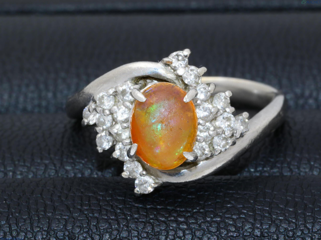ファイアオパール0.92 ダイヤ リング Pt900 5.6g /D0.43