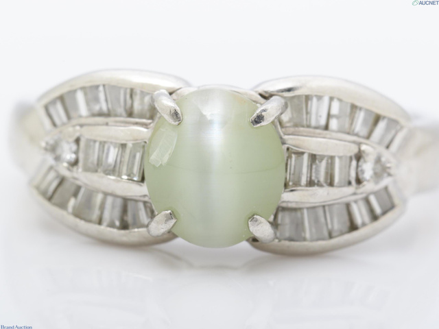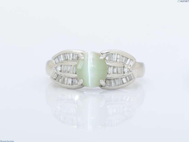 Pt900 クリソベリルキャッツアイ2.16ct ダイヤモンド0.46ct