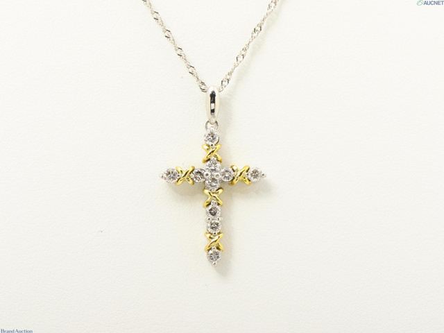 ダイヤ 0.50 クロス ネックレス Pt900/850/K18YG 4.8g
