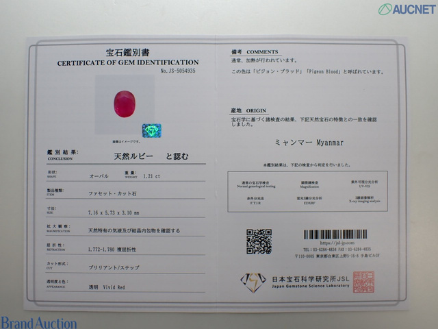 PT900 ルビー1.21 通常 ピジョンブラッド ビルマ D0.38