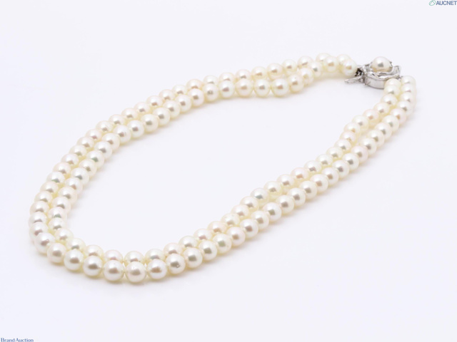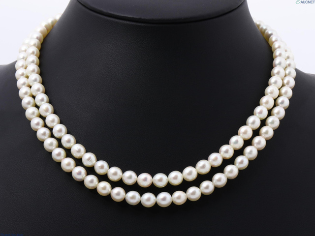 アコヤ真珠ネックレス 2連 6.5mmー7.0mm SV 首周り約42cm