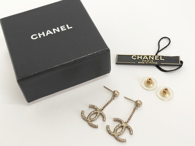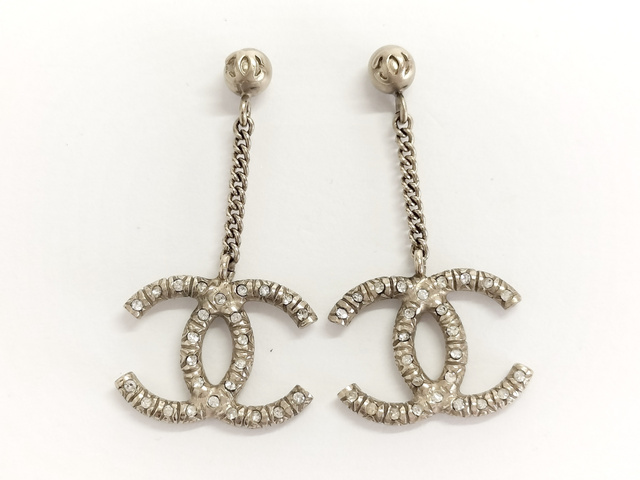 ココ ラインストーン ぶら下がり ゴールド ピアス