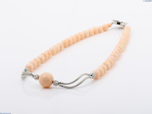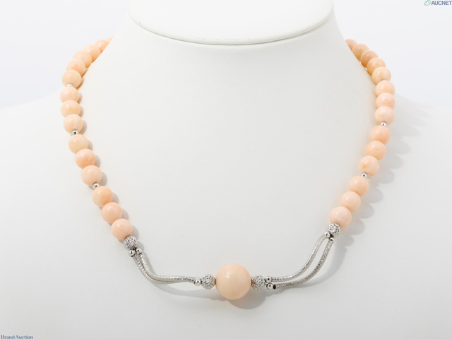 留め具K14保証/ネックレス部分PT約85%・SV ピンク珊瑚 総重量39.8g