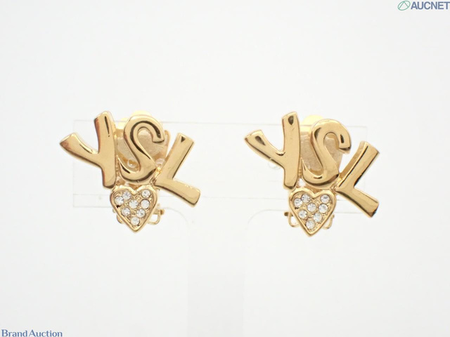 YSL イヤリング ロゴマーク ゴールドカラー ラインストーン