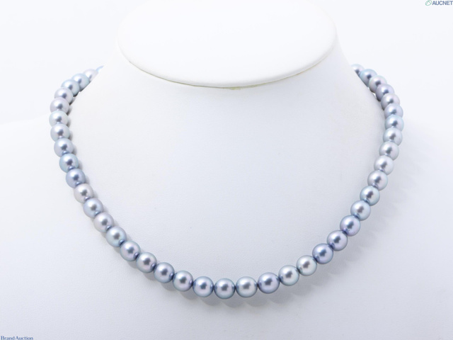 SV グレーパール(着色) 7.6mmー7.9mm ネックレス 首周り約43cm