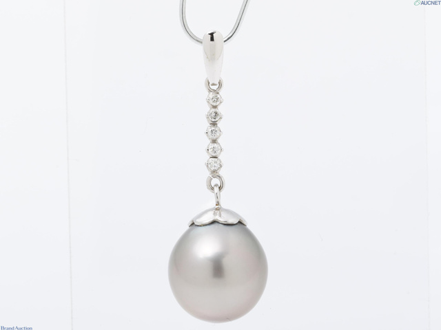 K14WG 黒蝶パール ダイヤ トップ 3.4g P約12.2mm