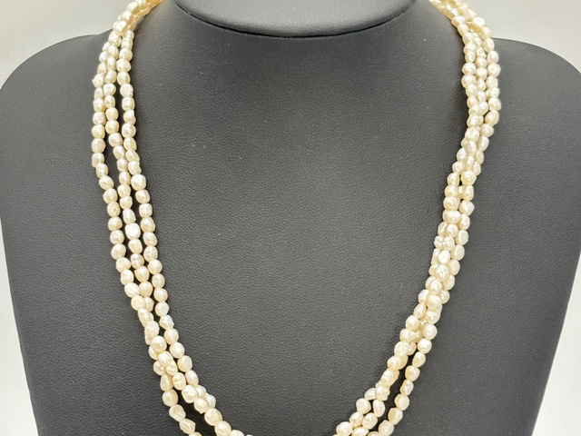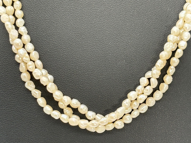 3連ケシパール ネックレス SV 首周り約42cm