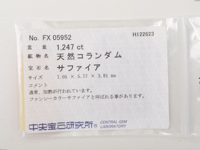ファンシーカラーサファイヤ 1.247ct