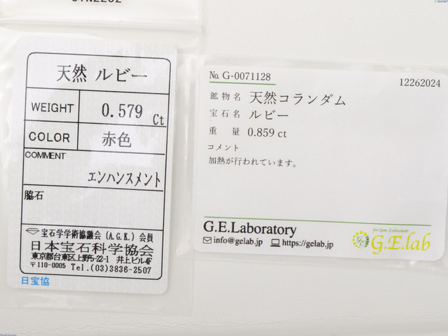 ルビー2点 0.859ct/0.579ct