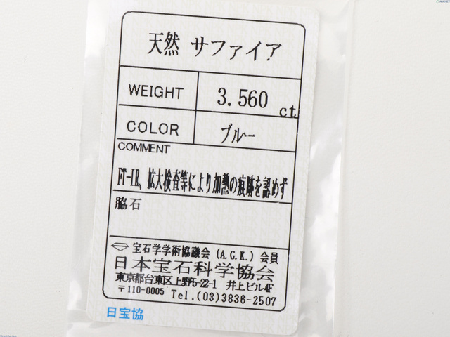 非加熱サファイヤ 3.56ct