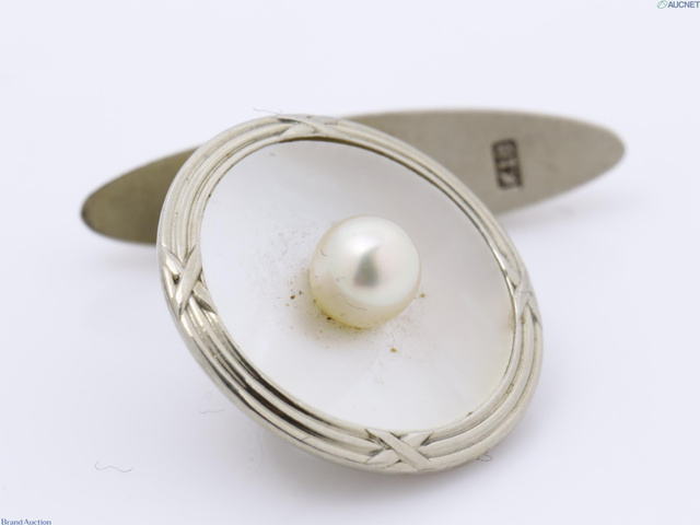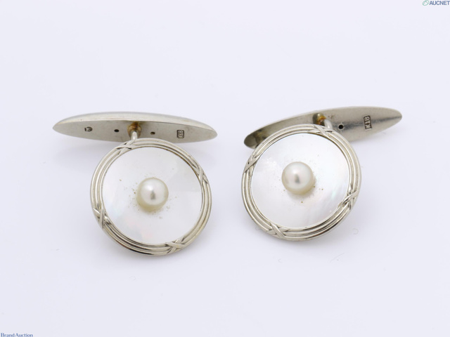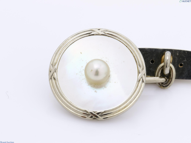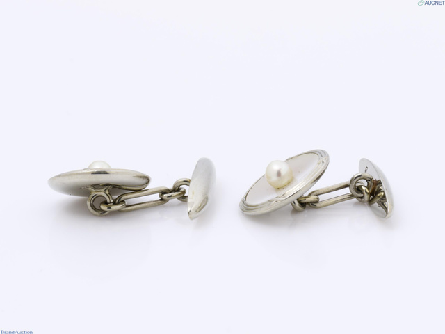 K18WG パール シェル カフス・ネクタイピン 5.4g
