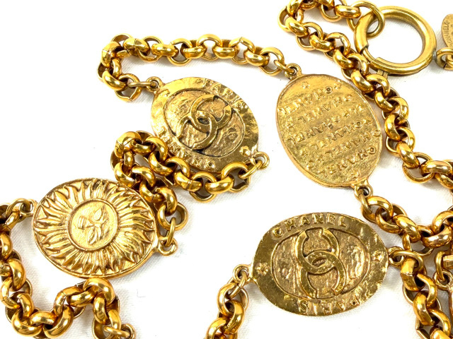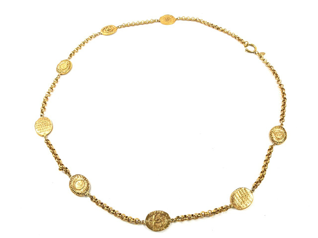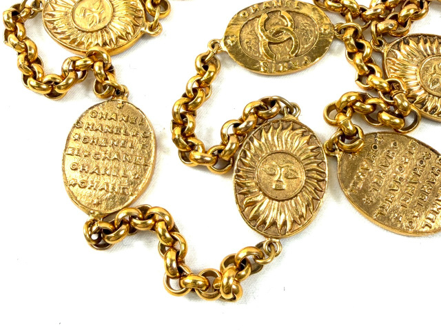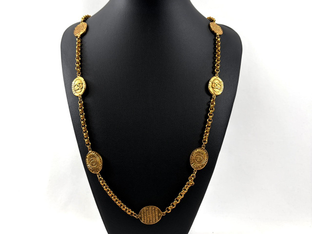 ココマーク ロゴ メダル 太陽 8連 ロングネックレス 全長約90cm