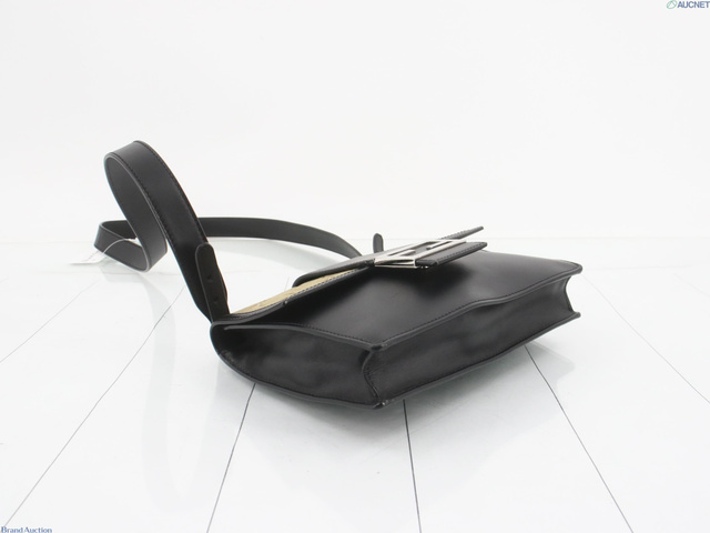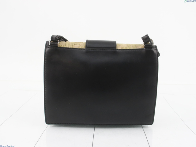 レザー×キャンバス フラット バゲット ミディアム ショルダーバッグ