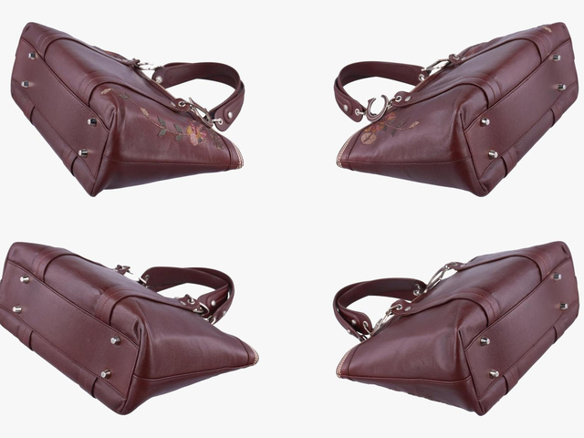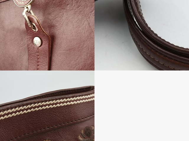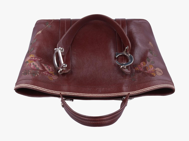 ロマンティックフラワートート レザー ワインレッド