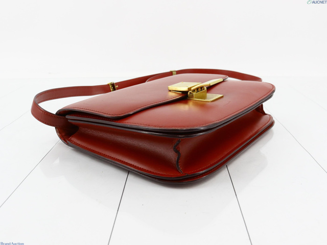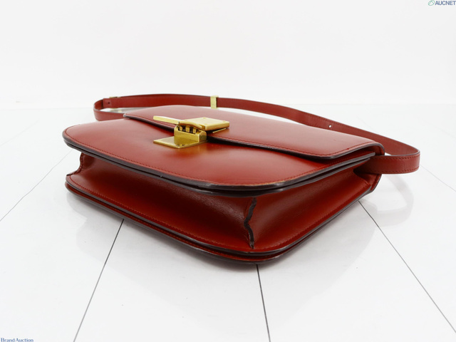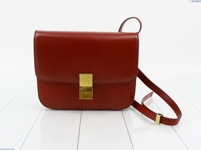 クラシックボックスミディアム レザー ショルダーバッグ レッド