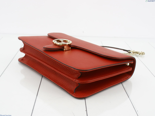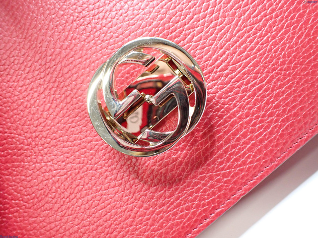 インターロッキングG レザー ショルダーバッグ レッド