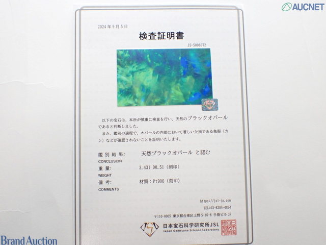 ブラックオパール3.431ct ダイヤ0.51 ペンダントトップ Pt900