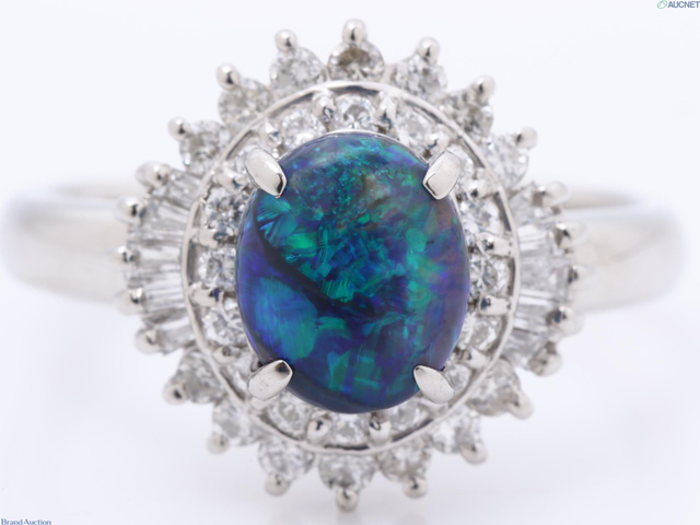 ブラックオパール ダイヤ 1.04 0.52 リング Pt900 6.6g