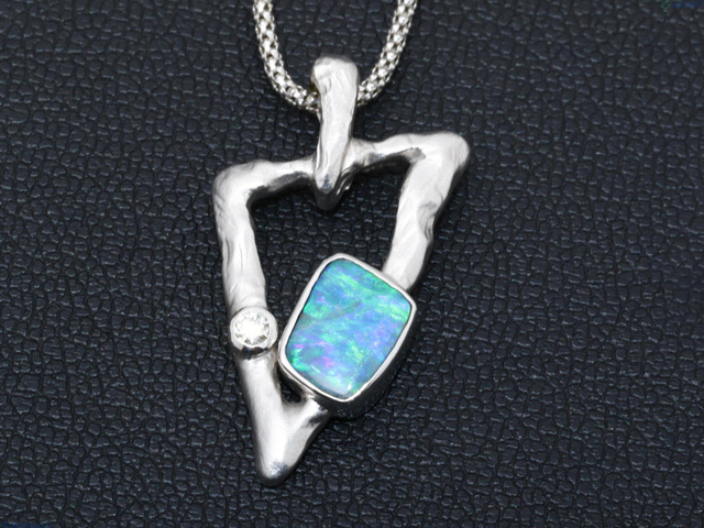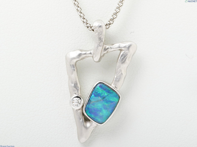 ボルダーオパール ダイヤ 1.48 0.06 ネックレス K18WG 7.7g