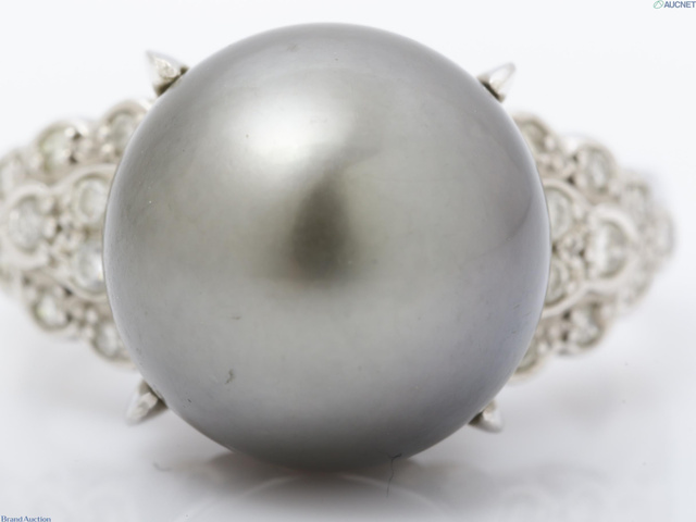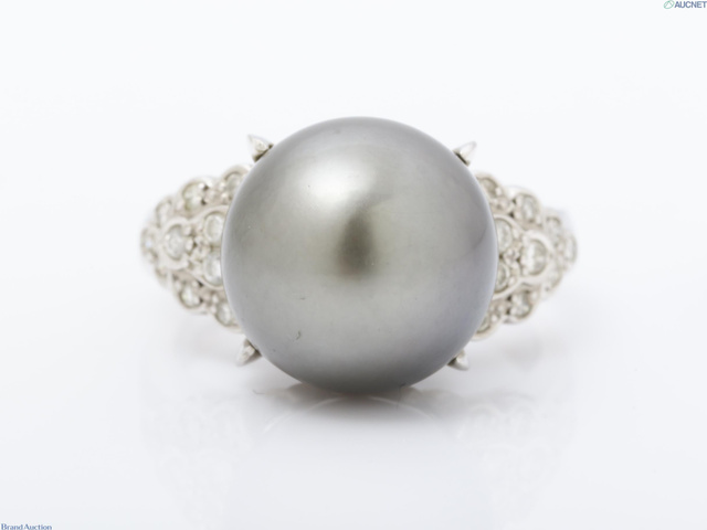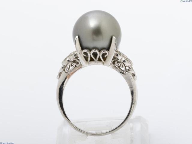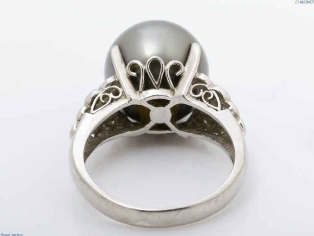 Pt900 リング 9.6g 黒蝶パール 径約12.6mm ダイヤ0.21