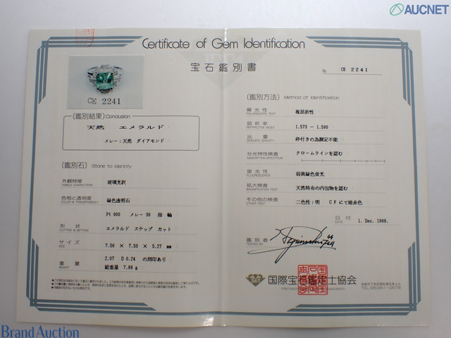 エメラルド PT900 E2.07 D0.24 7.6g #9