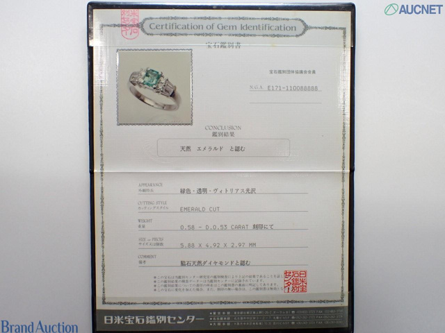 Pt900 エメラルドリング D0.53/E0.58ct 6.0g #16