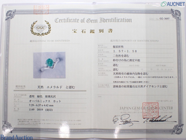 PT900 エメラルド 1.149ct 6.9g D0.19 #10.5