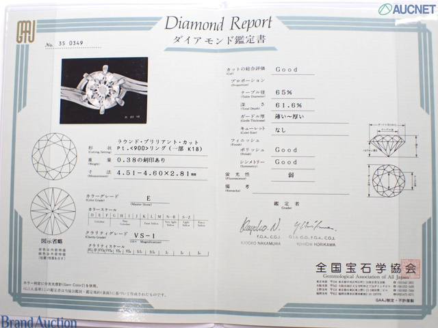 ダイヤモンドPT900/K18 D0.38 E-VS1ーGOODー弱 3.4g