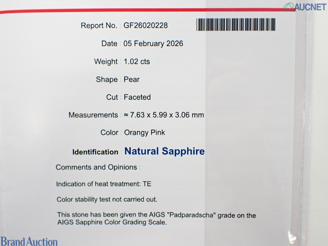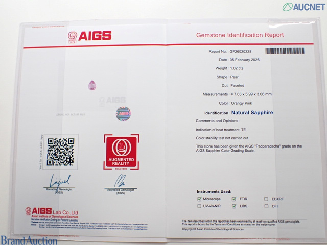 パパラアチャサファイア1.02ct AIGS D0.7 pt900 5.5g