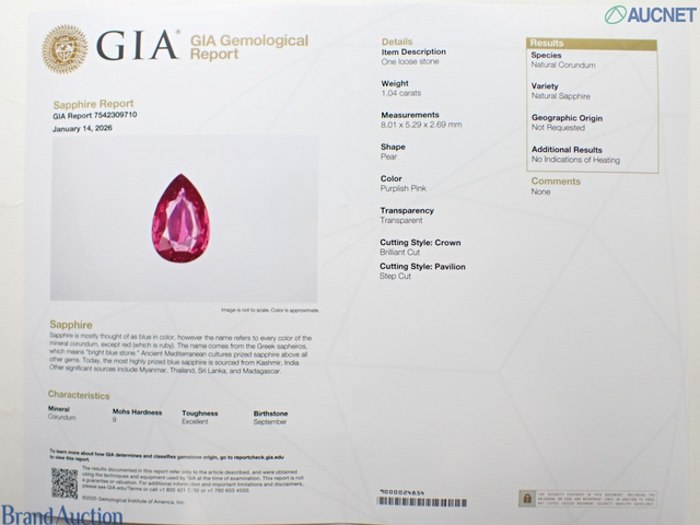 ピンクサファイア1.04ct Noheat GIA D0.42