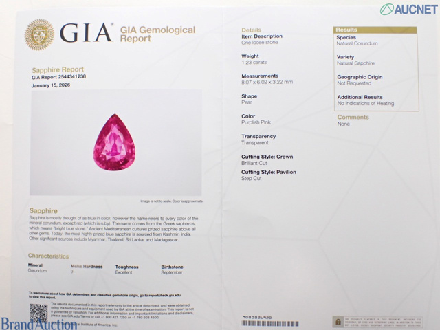ピンクサファイア1.23ct Noheat GIA D0.7ct
