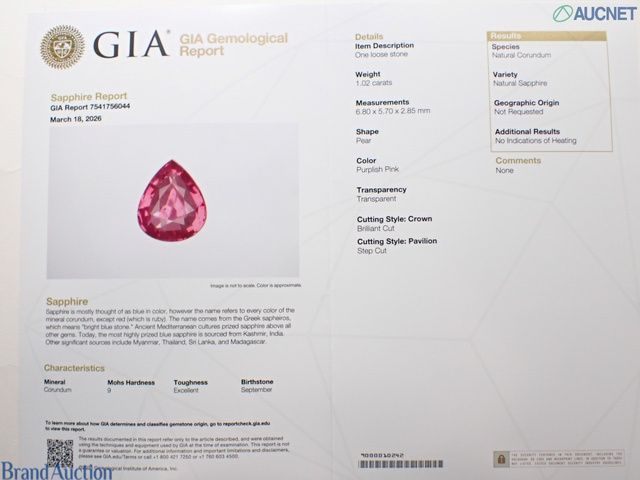 ピンクS1.02ct Noheat GIA D0.7ct pt900 5.36g