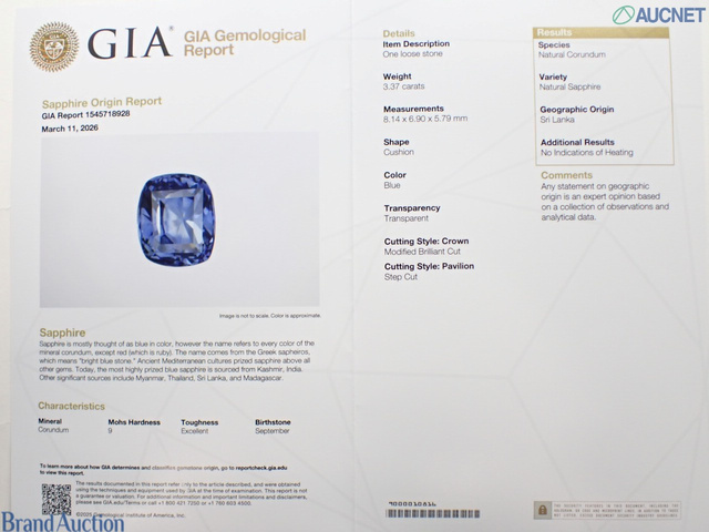 サファイア3.37ct Noheat GIA D0.67 pt900 5.38g