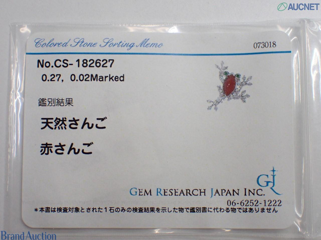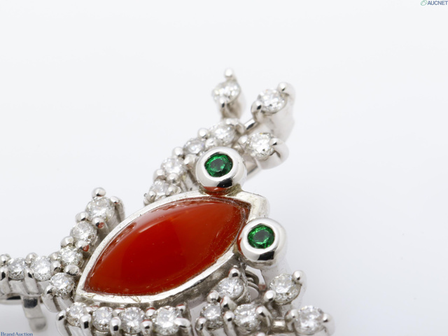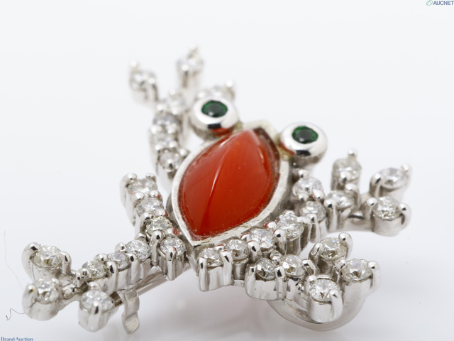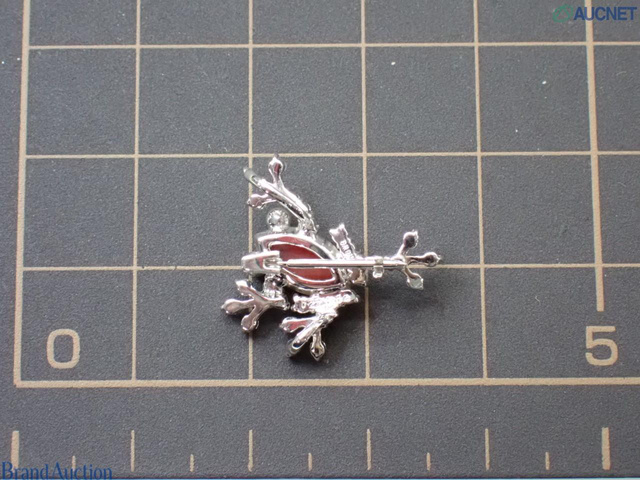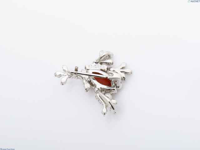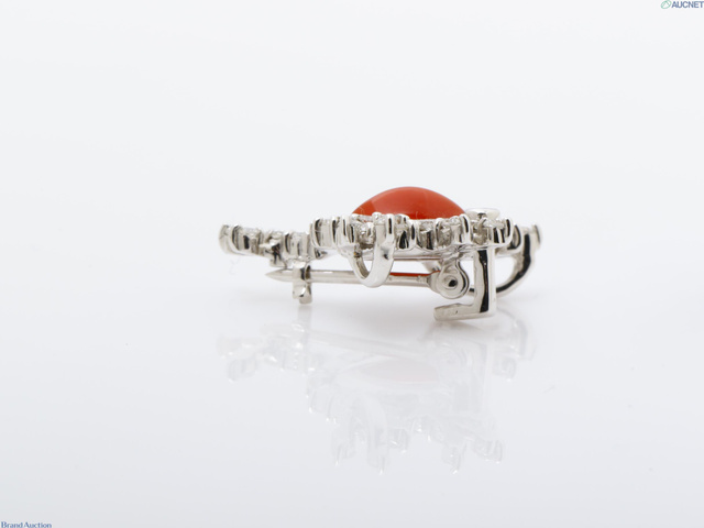 K18WG サンゴダイヤモンドブローチ 2.1g D0.27 G0.02ct
