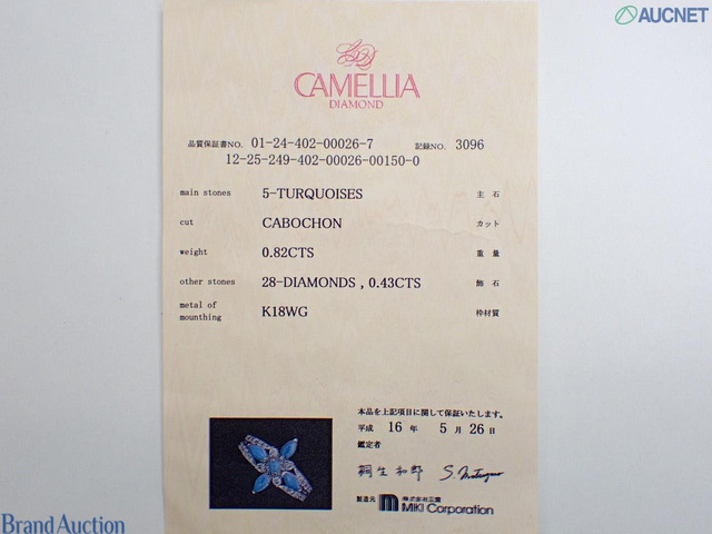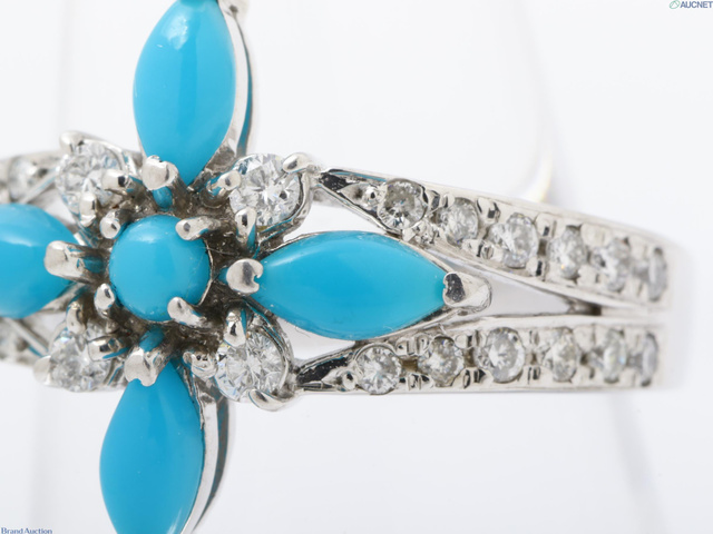 K18WG ターコイズダイヤモンド 0.82 D0.43ct 6.1g #11