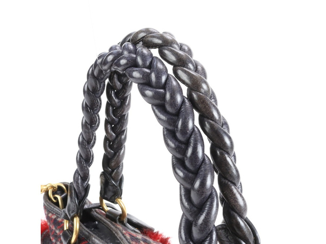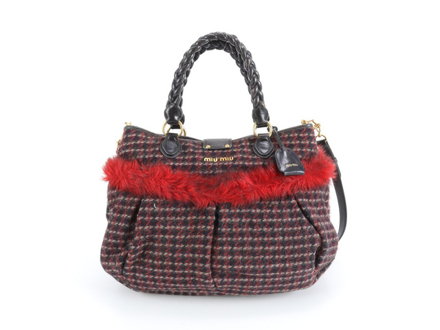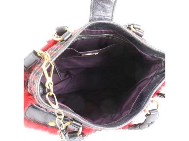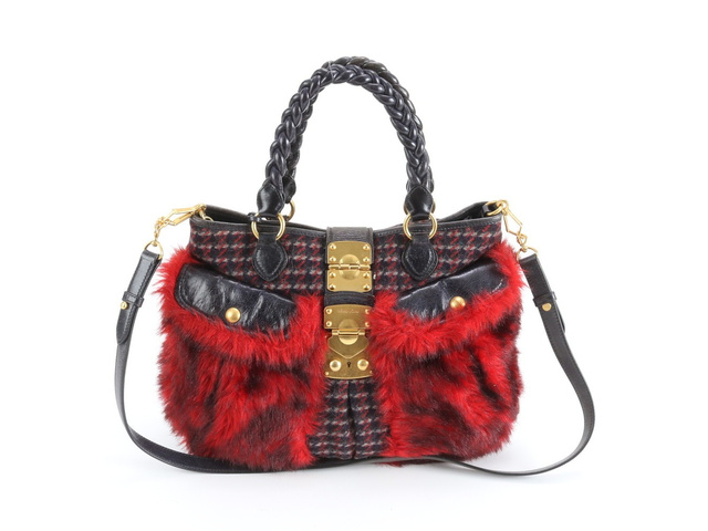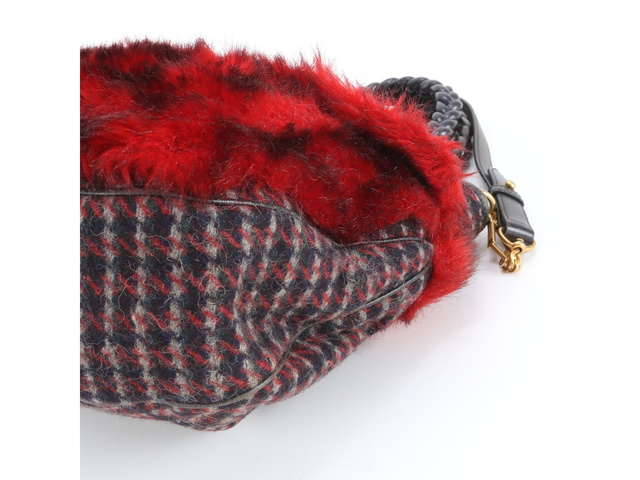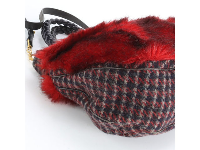 千鳥柄 ファー レザー 2WAY