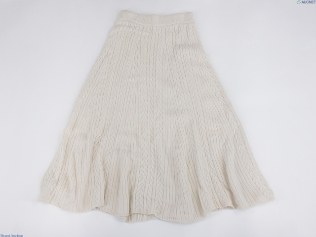 k* ロング丈 フレアスカート ニットスカート M 白系 ホワイト 毛