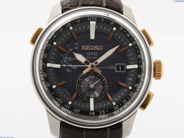 不動 アストロン メンズ ブラック SS/革 電波ソーラー