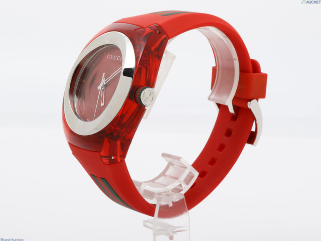動作正常 シンク 137.1 クォーツ 赤文字盤 シェリーライン ラバーベルト
