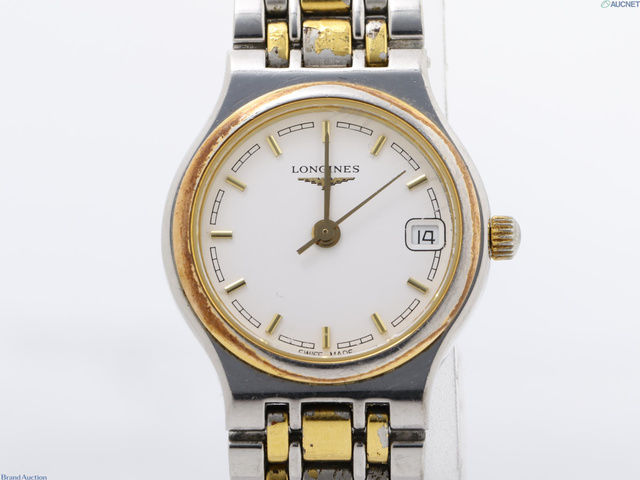 不動 ロンジン デイト ホワイト文字盤 SS レディース