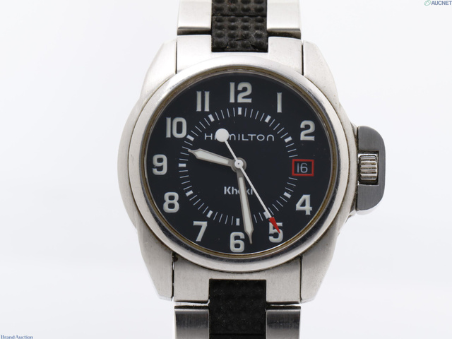 不動 カーキ デイト ブラック文字盤 SS メンズ