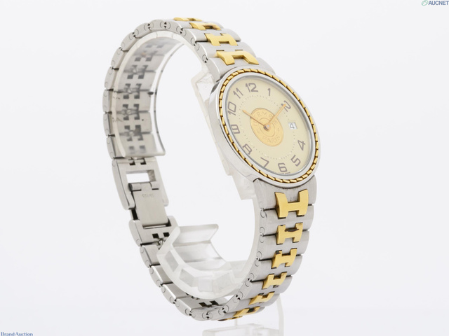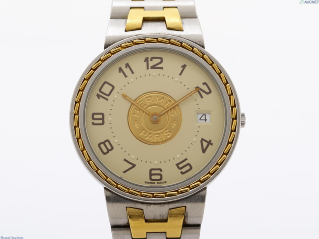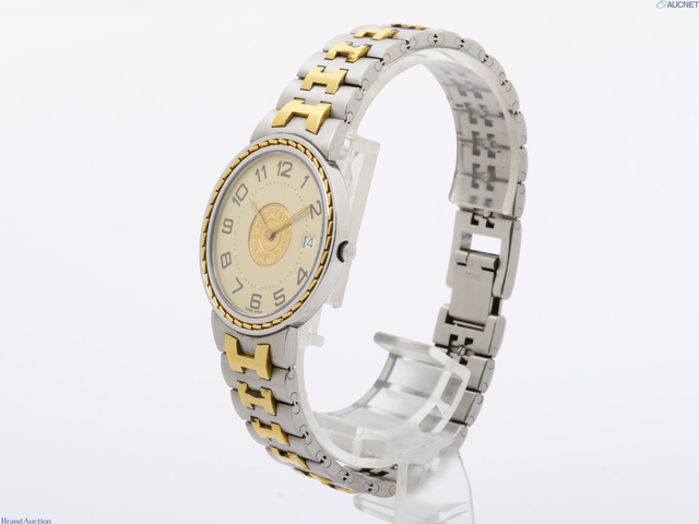 エルメス セリエ 金文字盤 デイト QZ メンズ カード/箱付き