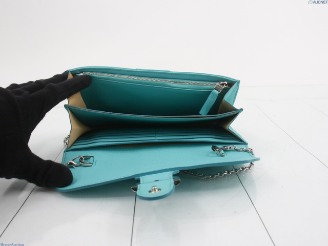 ブリヨン レザー チェーンウォレット ブルー系