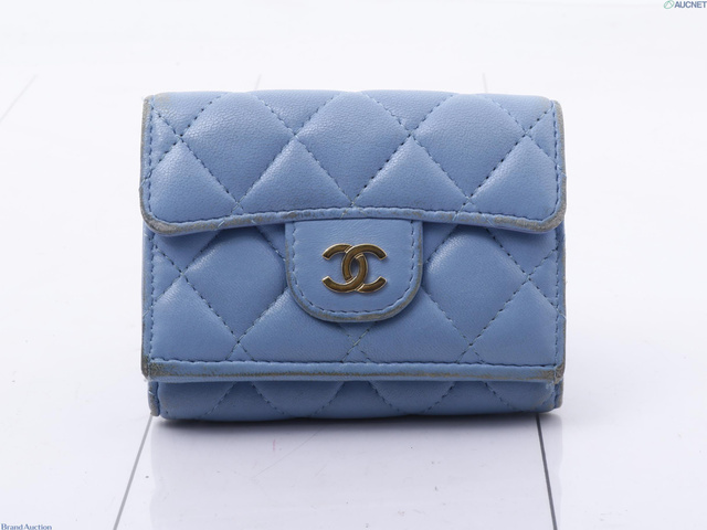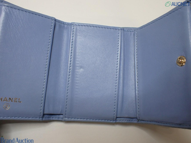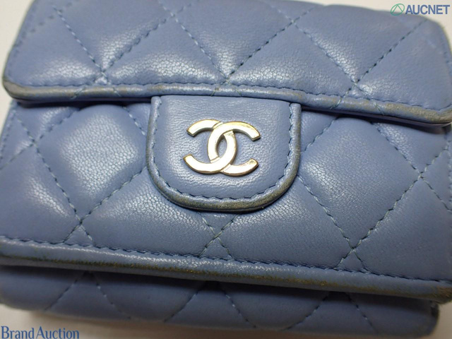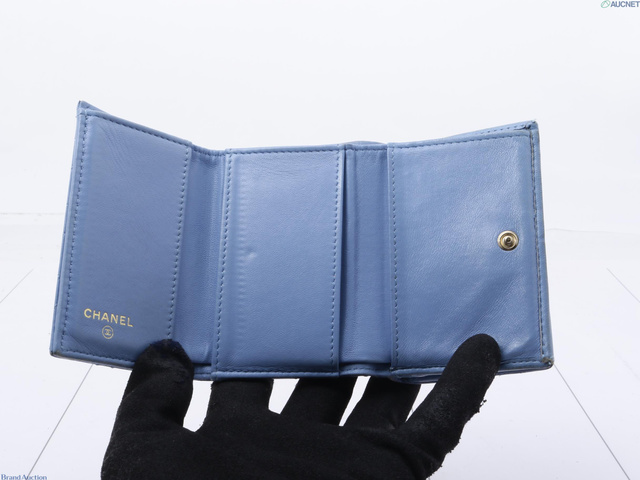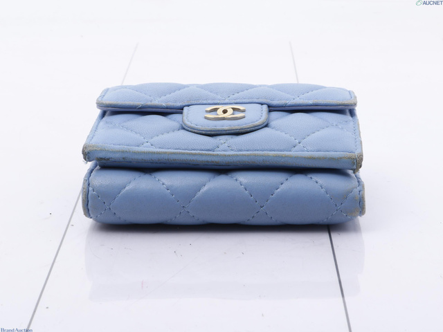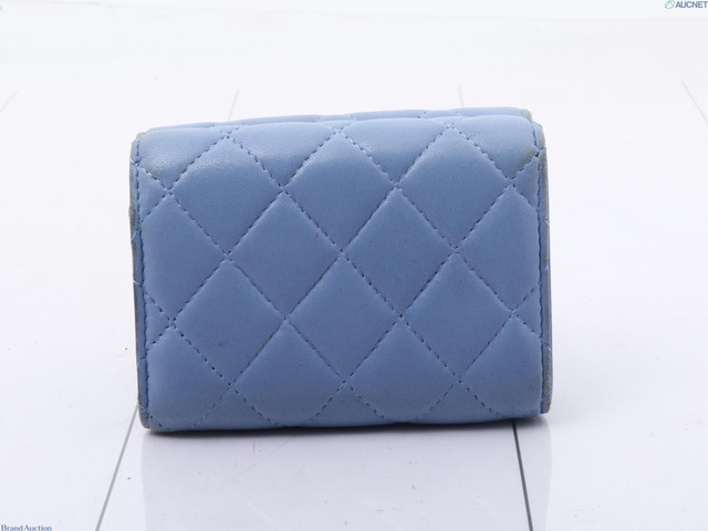シャネル マトラッセ 三つ折り財布 ブルー 30768051