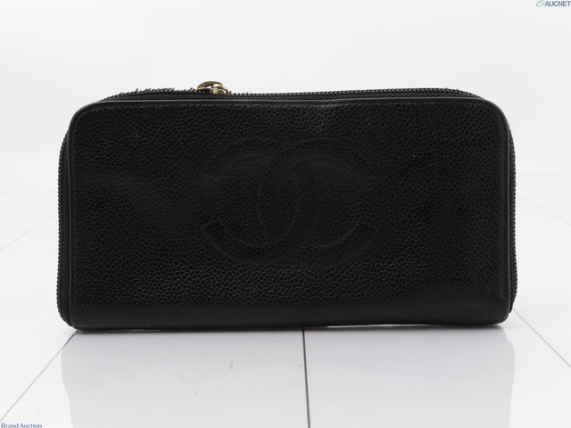 シャネル キャビアスキン 長財布 アラウンドジップ ブラック 8966095