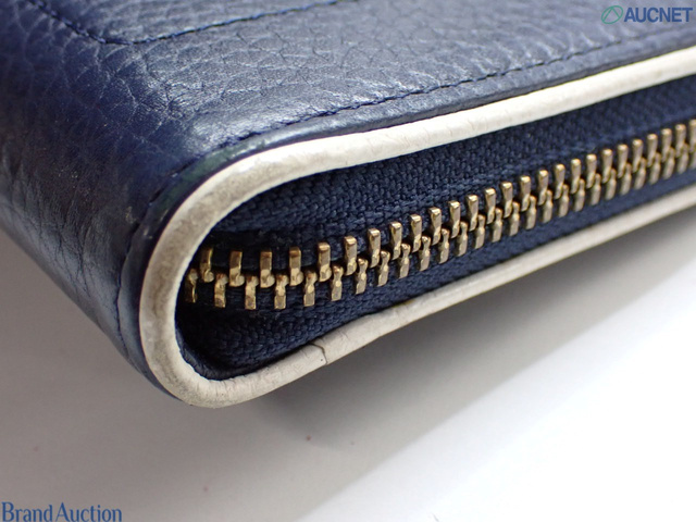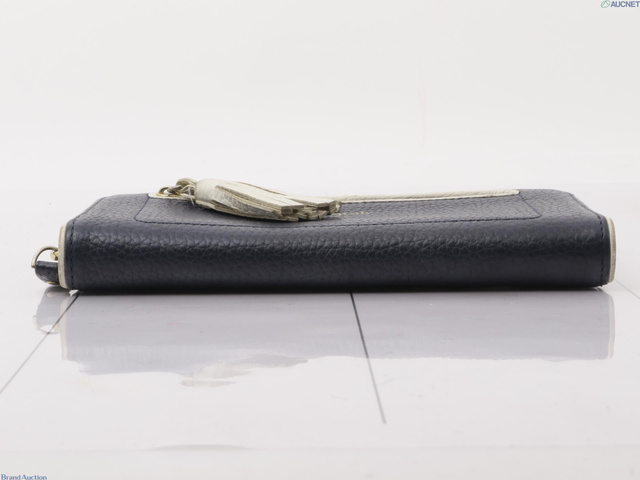 フリンジ ラウンドファスナー レザー ネイビー